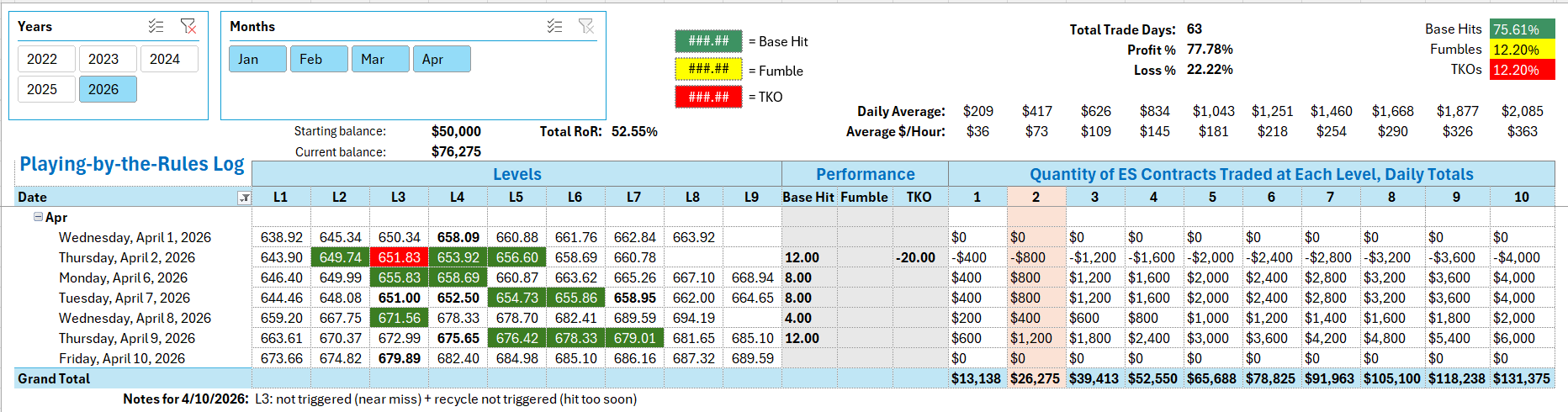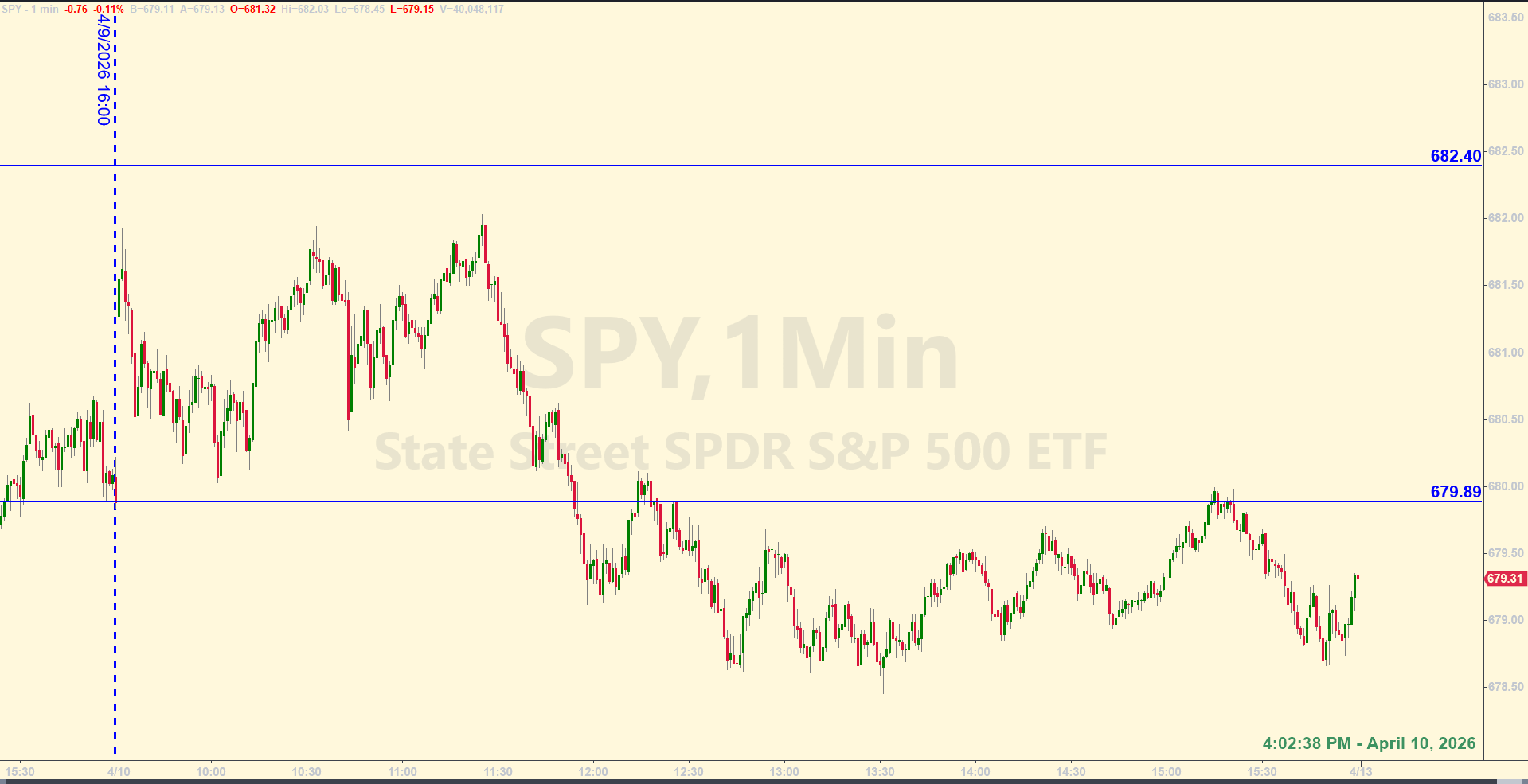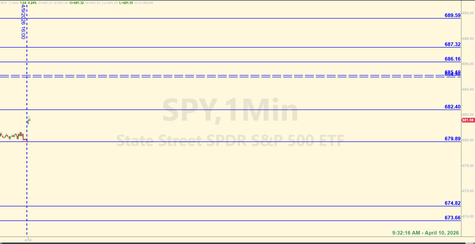 One level was hit today and price messed around with it during most of the trading session. That level was 679.89. However, playing by the rules meant no long trade when price came down and hit the level at 11:54 am. That was because of the Near Miss at 10:02 am. Then, once price got under the level, there was no Recycle Trade triggered because price came back up into the level from under it too soon. We like to see 20 minutes or more before attempting a Recycle Trade. The level was important, but no official trades today. Holding at 52% rate of return for 2026 so far.