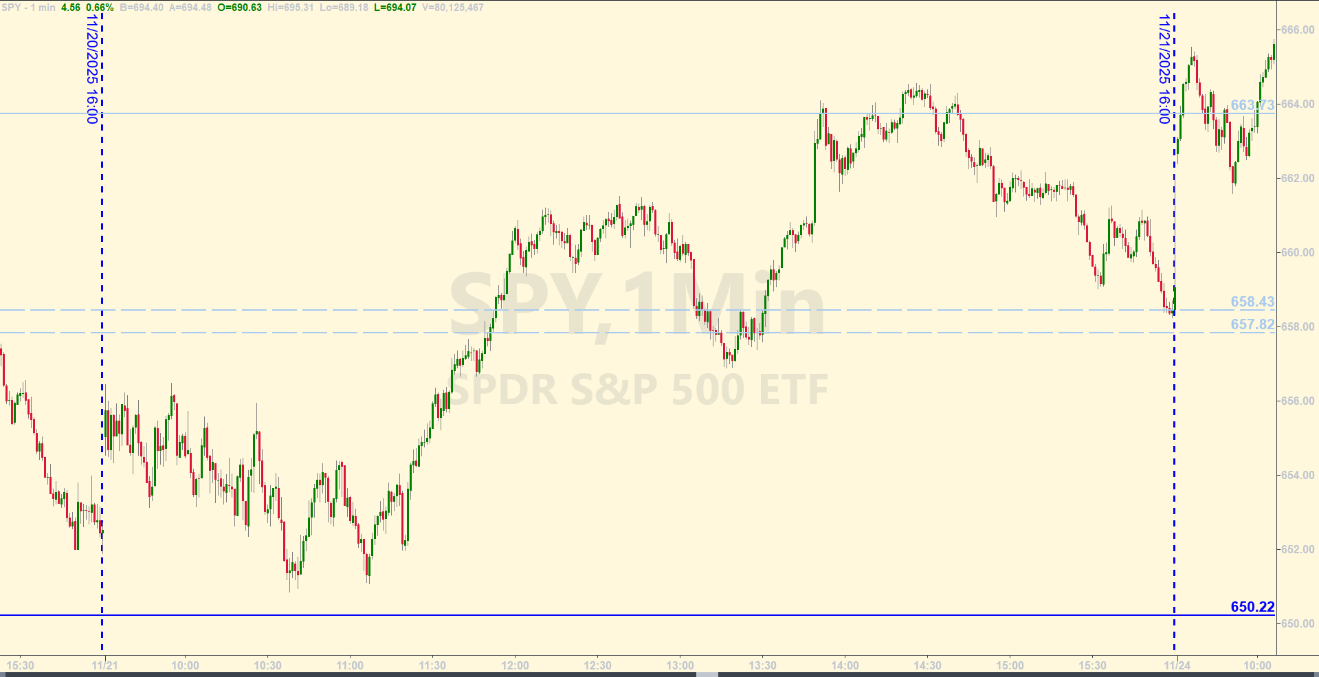 If price stays below the zone at 657.82 to 658.43, the bears will likely have an easier time keeping price deflated. If price can get above 663.73 and establish closes of significance up there, the bulls might be able to pull price up some more. The other levels would benefit from extra validation in real time if you choose to trade against them. You certainly would need to give the levels more wiggle room, and not expect precision when volatility is increased like this. And adjust position size accordingly to minimize risk.
