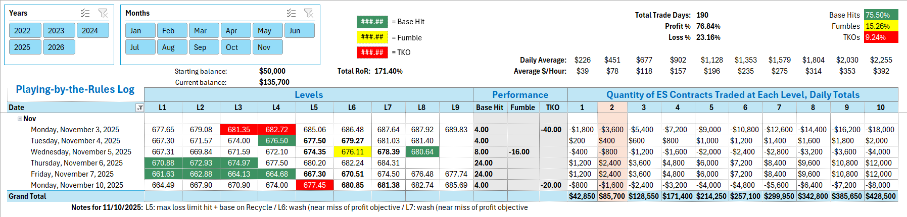 Tracking Log to-date for 2025: