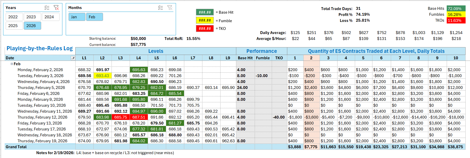 Tracking log to-date for 2026: