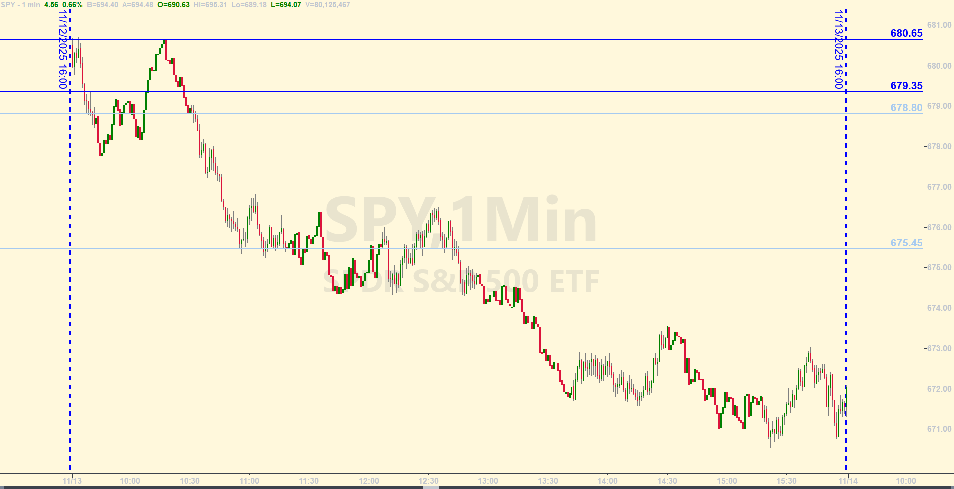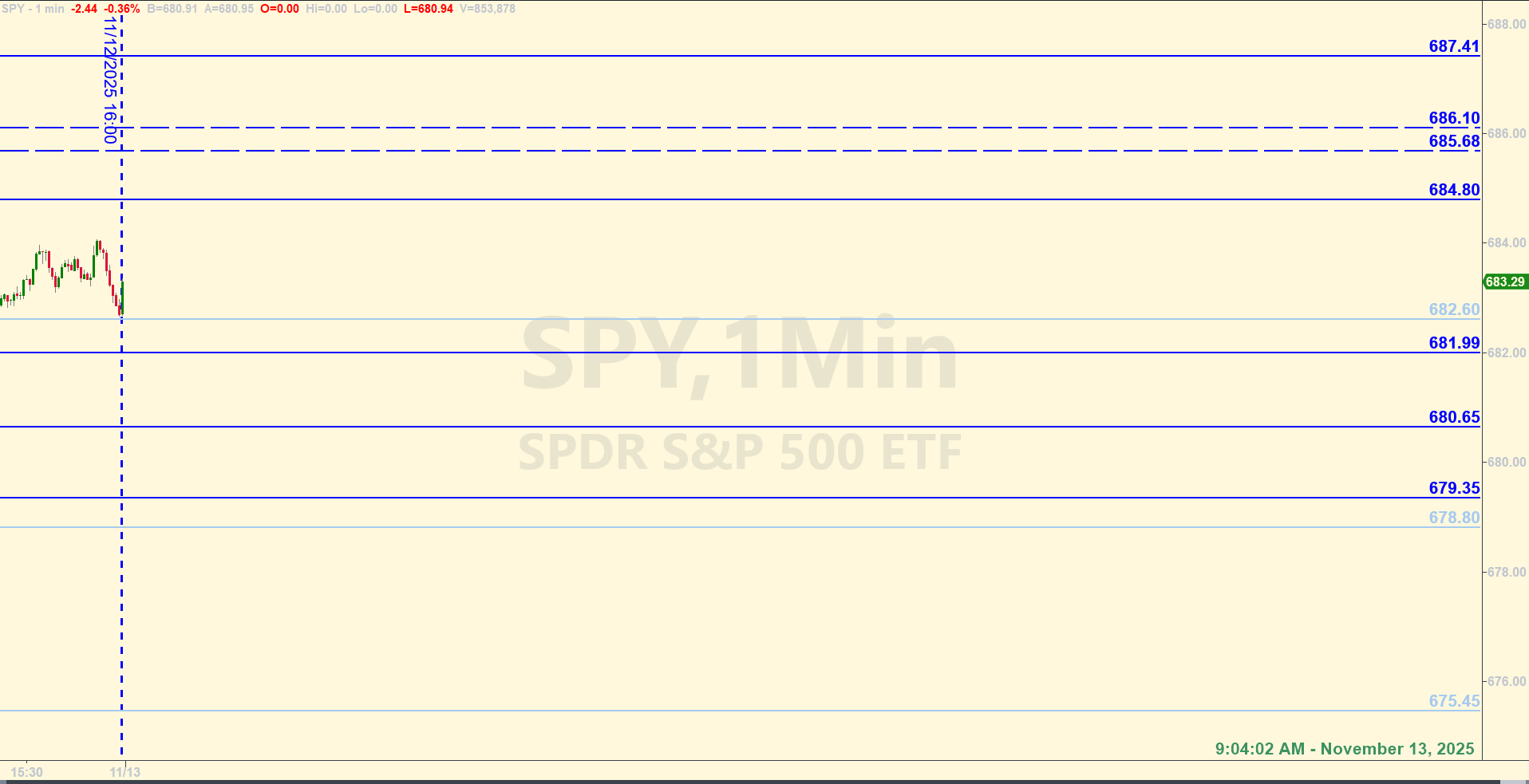 9:04 AM – All day yesterday during the regular session, price messed around with both the bull and bear axis levels we had on the board for the day. Price stayed mostly within the range of those levels, not extending very far outside the extremes of the range. And the after-hours price action doesn’t look much different. So far, as of about 8:30 AM, price is below the bear axis of 682.15 from yesterday.