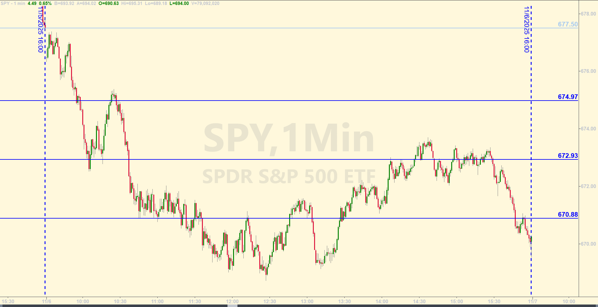 9:29 AM – Price has stayed near yesterday’s close at around 677.50 throughout the overnight session. Going flat like this, combined with the rejection toward the end of the regular session yesterday could be clues that the bears aren’t going to let price get too far out of that bullish consolidation that got price to rally yesterday morning. If we get hourly closes below 677.50 – which is our axis level for today – that is not as good for the bulls. They need price to stay above the axis for them to keep climbing.