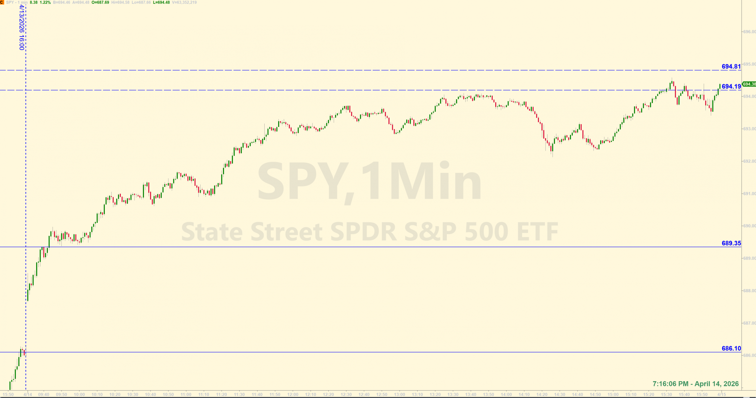 As the bulls drove price higher today, we got one Base Hit - or more if you were willing to hold onto the trade. It was a long trade against 689.35 entered at 9:50 am. That ended up being the launching point for a lot of points. This morning, we talked about giving the levels more wiggle room. This is part of what that meant. It may not have been easy to hold for the entire ride up to 694.19, but that was the start of the next big area of overhead resistance. We had no official levels on the board today above 689.35 until the zone that started up at 694.19. So, one Base Hit for sure.