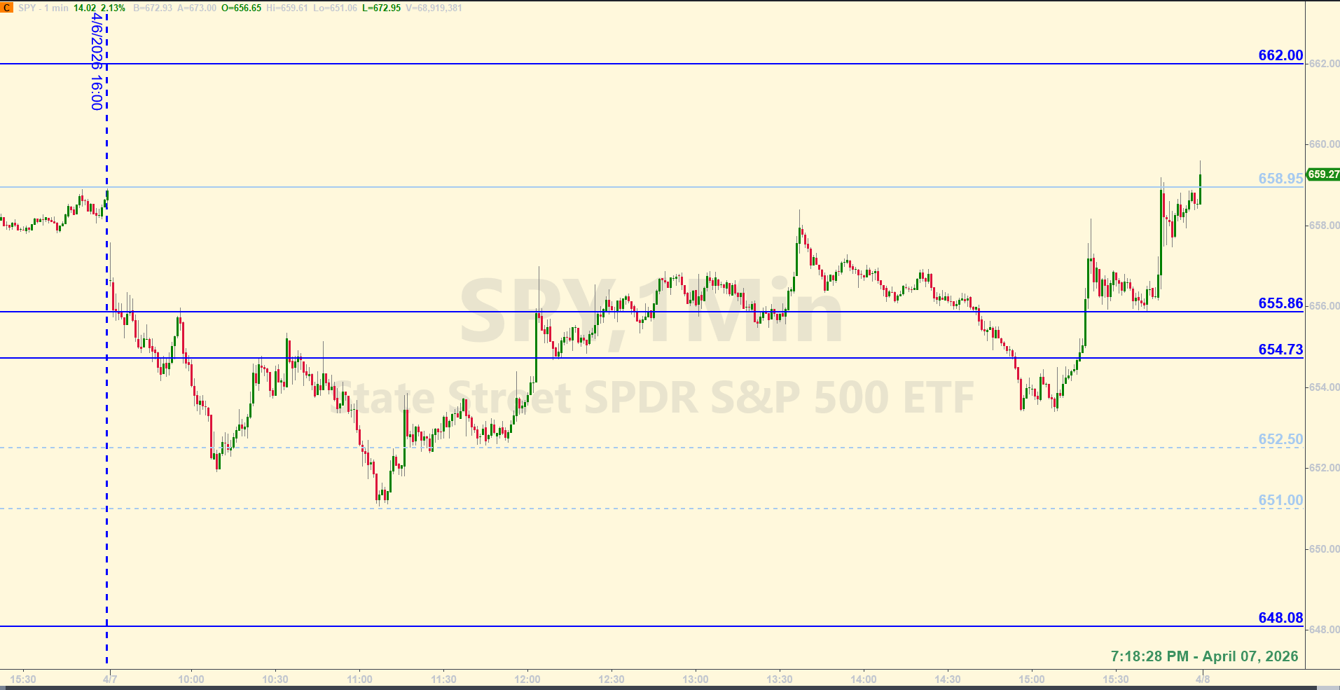 When price got up to the bull axis of 658.95, there was no short trade triggered against that level because it was hit within 30 minutes of the close of the regular session. Net-net, two official Base Hit trades for the day. And by the way, once price got above the bull axis, they were in a good place to react to the post-market news. Price has a nice lift so far as of 9:00 pm Eastern. Where they open tomorrow morning could be different. It should be an interesting rest of the week.