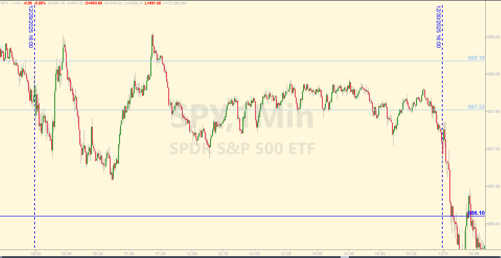 Being a shortened trading week because of the New Years holiday, the overall market is likely to be quiet. But as we said yesterday, be aware of sudden moves when volume is light. That kind of thing can happen with news events, data releases, and anything that looks like a black swan. For today, there are FOMC meeting minutes being published at 2:00 PM Eastern. So, be aware of your surroundings leading up to 2:00 PM. Trade well today.