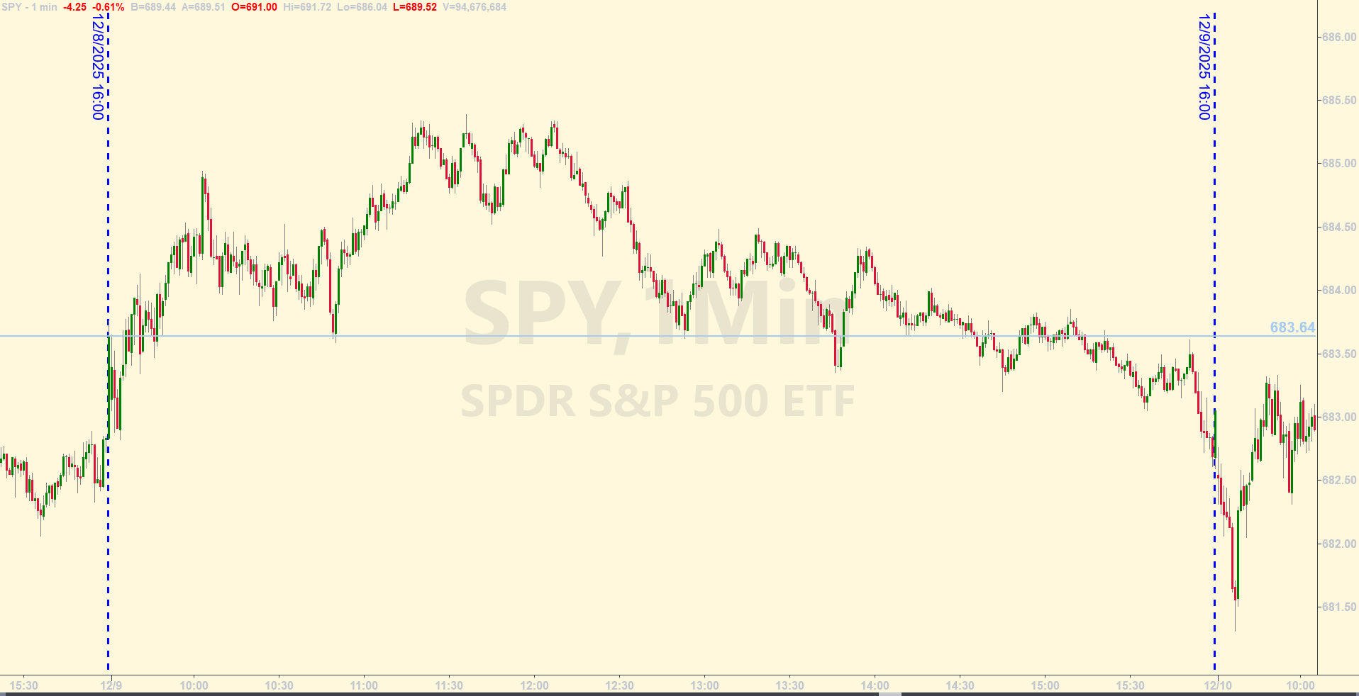 There is a cluster of levels starting at 680.65 and below – including a zone between 678.80 and 678.54 – that are relatively close together. The reason I’m including all these levels on the board for today is that today is the day before an important FOMC announcement day, and generally, things can be slow on the Tuesday before FOMC days. If the market is acting “normal”, all the levels are fair game – assuming price interacts with the levels pursuant to the Ticks & Trades rules. But if for some reason, price gets whippy and is moving fast – volatility has picked up for some reason – then it’s probably a good idea to sit back and not trade every level that gets hit. It’s not probable that volatility will pick up, but I want to mention that when levels are relatively close together like this. Trade well today.