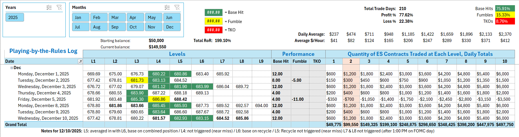 Price was under the axis zone at the close of the first 15-minute candle. Triggering a short at the bottom of the zone at 682.93 and adding to the position by selling the same number of contracts when SPY hit the top of the zone at 683.15 - that was the plan. You pulled a Base Hit on the combined position, your first 8 ES points. And, in case you're wondering, the bounce at 681.57 at 9:37 AM Eastern was not a trade per the rules, because that level was hit within the first 15 minutes after the opening bell. Later, when 681,57 was tested again around 10:40 AM, it was a Near Miss. So trading that level on the long side was off the table at that point. They did bounce there again at 11:03, but we're not trading it after the first hit. You still have 8 ES points. The third and final trade was a Recycle of the top of the zone at 683.15 when price came back down from the top, after getting above the level for the right amount of time. When price tested the bottom of the zone at 682.93, it was a Near Miss, taking that level off the table for the rest of the trading session. After this third trade, no other levels were hit before 1:00 PM, which is the cut-off for trading on FOMC days. You can observe that the levels still provided reactions that would have bagged many points - but we leave the market alone leading up to FOMC announcements.